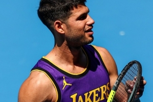 体育资讯1月13日讯 据昨日报道,西班牙网球名将、现男子单打排名第一的卡洛斯-阿尔卡拉斯在澳大利亚网球公开赛的训练中上身了湖人球星詹姆斯的23号球衣。