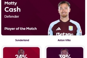 本场比赛,卡什为维拉打进一球,传球成功率90.3%,贡献2次解围、1次拦截和2次抢断,7次对抗成功5次,赛后他获得39%的票数,被评为全场最佳。
