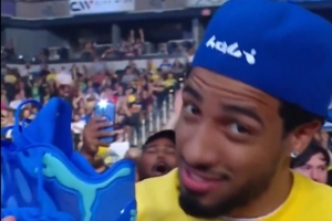 前NBA球员蒂格和现步行者球星哈利伯顿也来到了现场观战,哈利伯顿还身穿着WWE巨星约翰-塞纳的周边T恤。