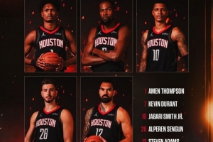 控卫汤普森,锋线杜兰特、史密斯,前场申京、亚当斯!