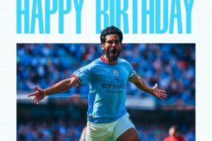 曼城官方社媒晒出京多安的生日海报,配文:“生日快乐,伊尔凯。”