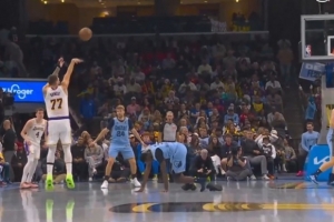 GIF-东契奇大变向将GG-杰克逊的鞋都晃掉了 可惜三分不中